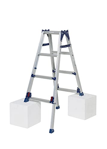 スタンダードタイプのはしご兼用脚立。最大約31cmまでの段差に対応できるアジャスト式四脚仕様。伸縮操作レバーにダブルロック機構を採用。支柱にアルミ合金の表面処理加工を施し、耐食性を向上。