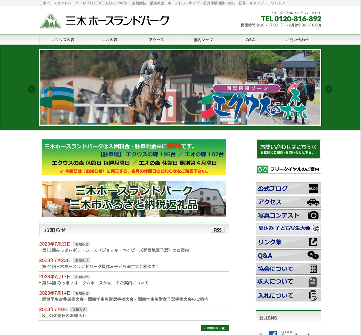 場所は兵庫県三木市にある三木ホースランドパークの中にある「三木ホーストレック」です。