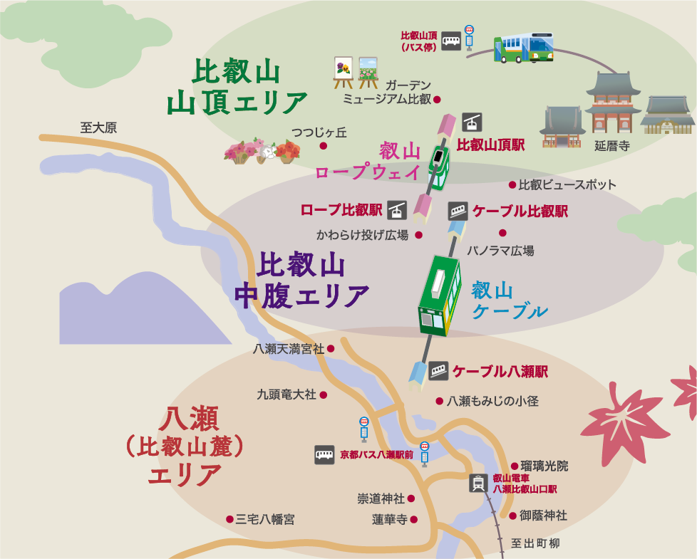 八瀬比叡山口駅のページです。駅情報、構内図、周辺マップなどをご案内します。