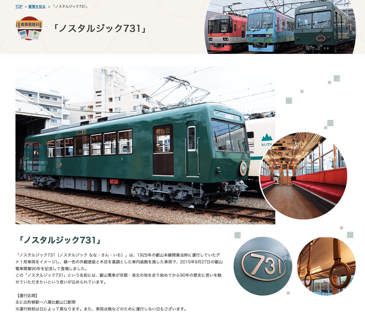 なんかカワイイ電車ですね。「ノスタルジック731」だそうです