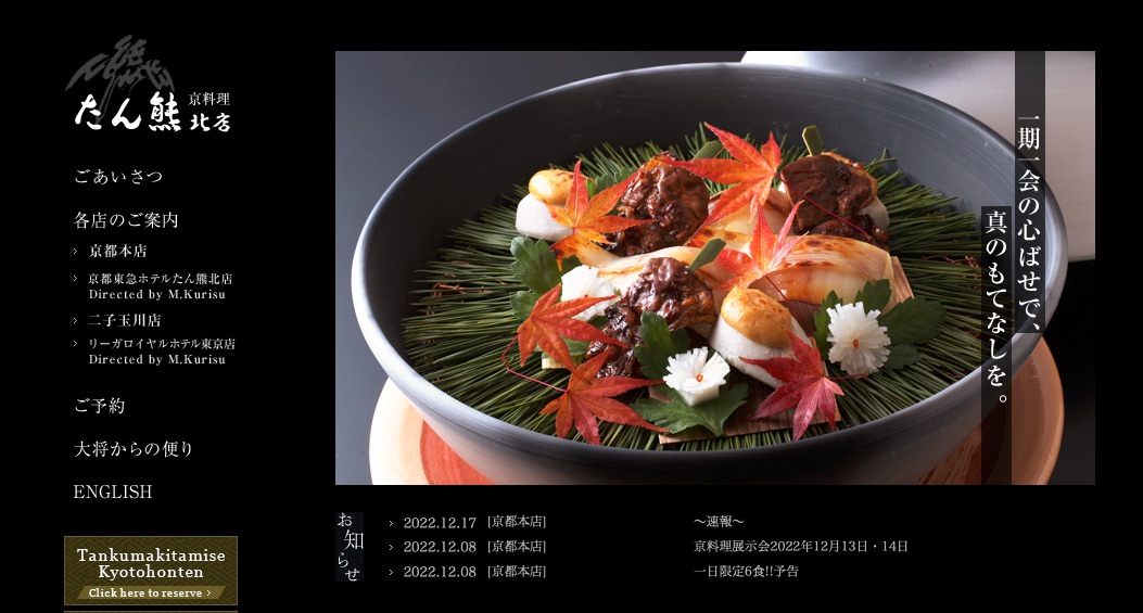 京都の日本料理・懐石料理、たん熊北店。昭和3年京都で創業。四季の風趣を凝らし、真心の伝統を受け継いだ京料理をお楽しみ下さい。