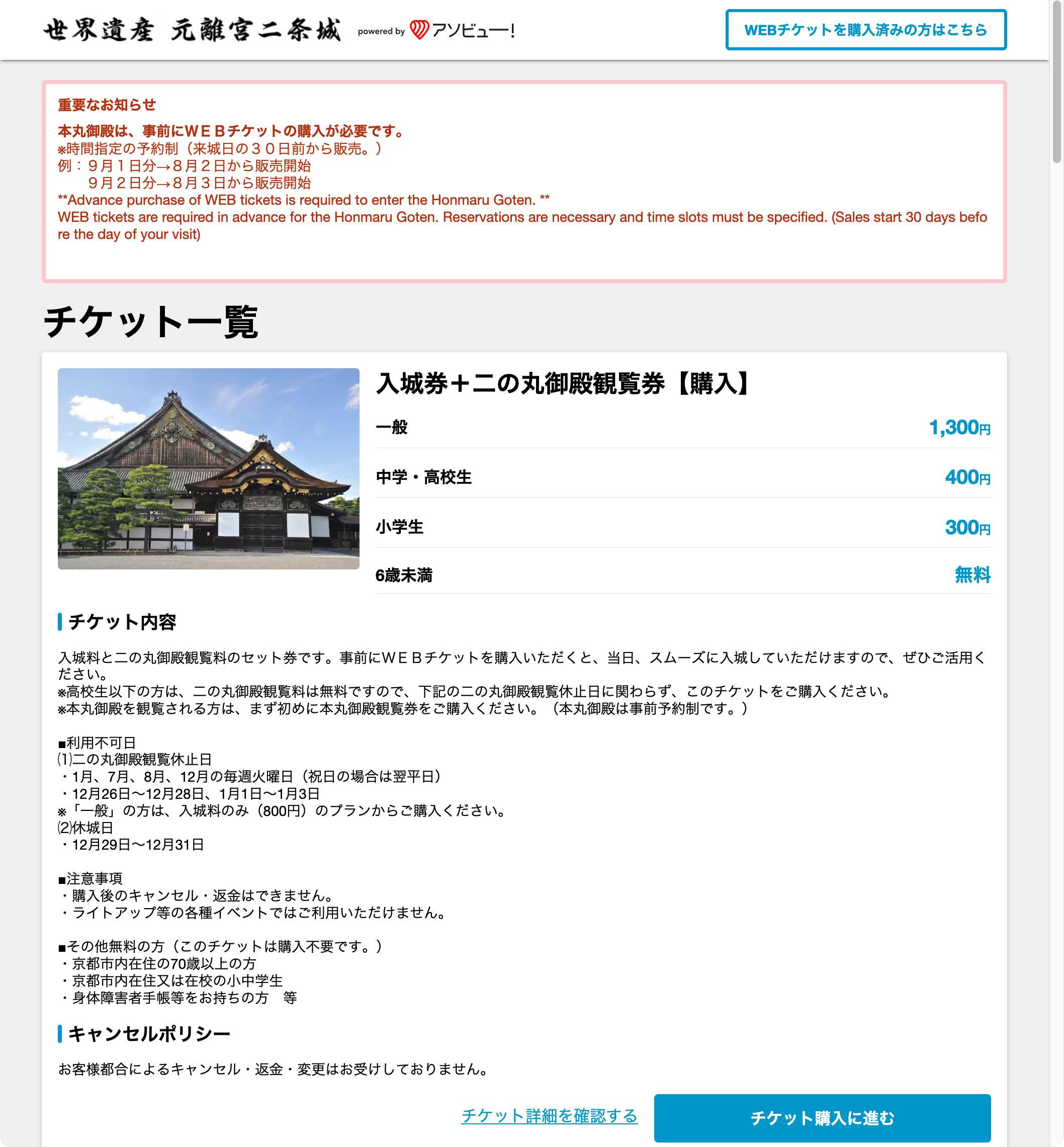 アソビューのサイトはコチラ(二条城のサイトからも行けます)